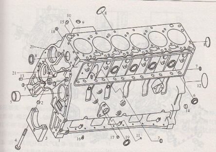 康明斯B系列六缸柴油机气缸体-曲轴箱的结构